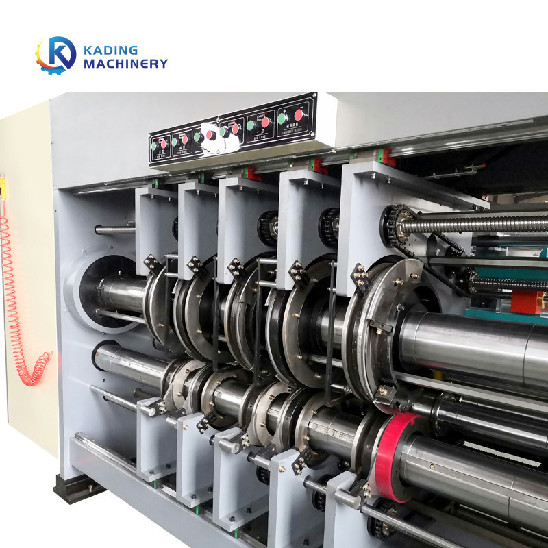 Les couteaux de fente de l'imprimante à carton ondulé sont tranchants et peuvent facilement couper le matériau en carton pour former des fentes propres et uniformes.Chaque couteau est soigneusement placé et aligné pour obtenir les spécifications exactes requises pour une conception de carton spécifiqueLe couteau de fente est réglable pour s'adapter à une variété de tailles et de conceptions de carton.fournissant une flexibilité et une personnalisation inégalées dans le processus de mise en piècesEn ce qui concerne l'unité de découpe, la surface des rouleaux de découpe est finement polie pour réduire au minimum les frottements et les résistances pendant le processus de coupe.assurant des coupes lisses et précises sans déchirure ni déformation du matériau.